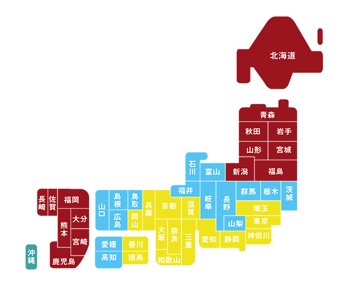 ・香川・徳島・岡山・兵庫・京都・大阪・奈良・和歌山・三重・滋賀・愛知・静岡・神奈川・東京・埼玉対応不可:赤色
